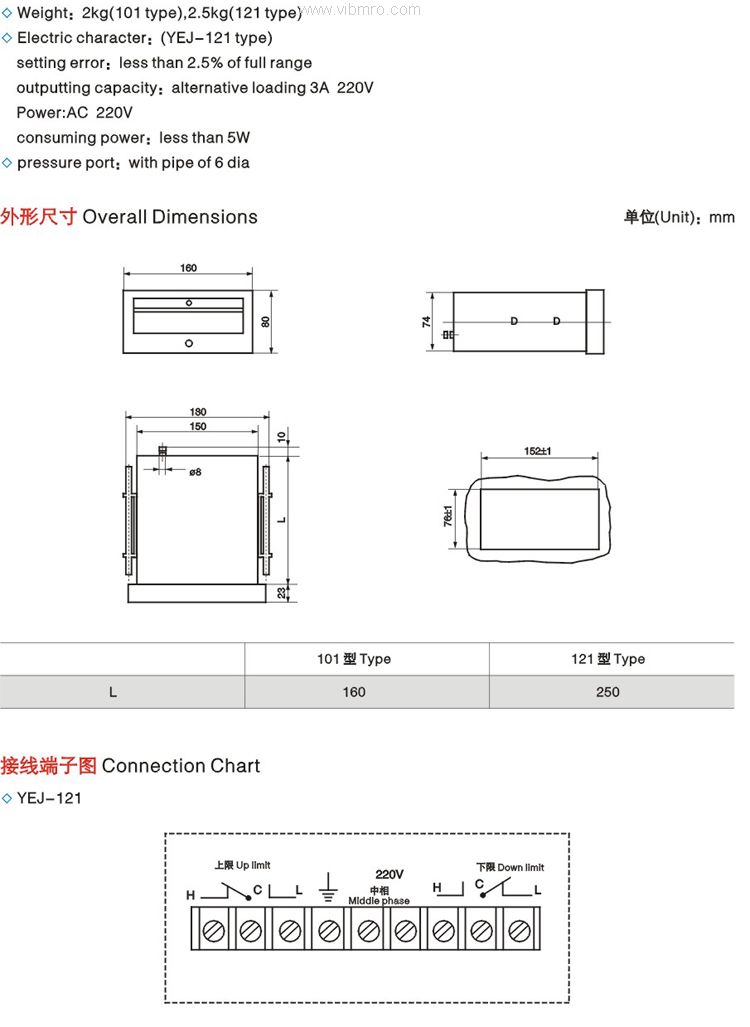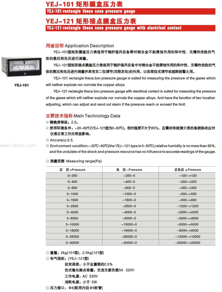 产品标题:YEJ-101矩形膜盒压力表